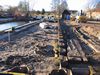 Ein Paar Ansichten unmittelbar zu Beginn des Baugeschehens. Zunächst wird das Gelände beräumt und der Mutterboden abgetragen, anschließend wird eine Spundwand gerammt, in deren Schutz die Schleuse neu aufgebaut wird.