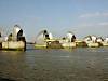 An der Themse - das blaue Band, das London teilt - liegt flußabwärts von Greenwich die Thames Flood Barrier. Diese futuristische Konstruktion kostete 500 Millionen Pfund und ist die größte bewegliche Sturmflutbarriere der Welt. Seit ihrer Errichtung 1982 hat sie schon mehr als 20 Mal London vor der Flut geschützt.