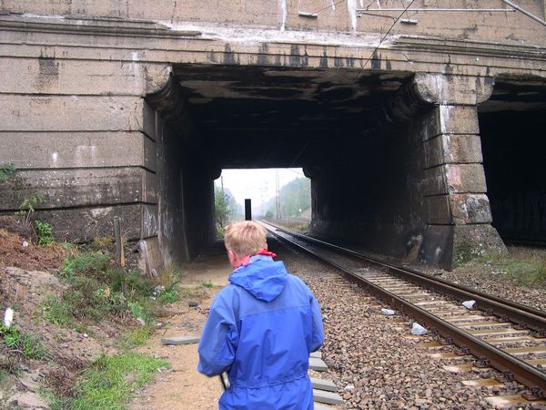 Früher liefen durch diese Öffnung zwei Gleise. Das Zweite führte auf die Schleife zur Bahn nach Frankfurt/Oder. Die Schleife wurde auch strategische Verbindungskrve genannt. Sie ermöglichte es Zügen unter Umgehung der Brücken über den Finowkanal bzw. des Bahnhofes Eberswalde eine direkte Zufahrt zur Templiner Bahn oder auch auf die Strecke Berlin-Stettin.