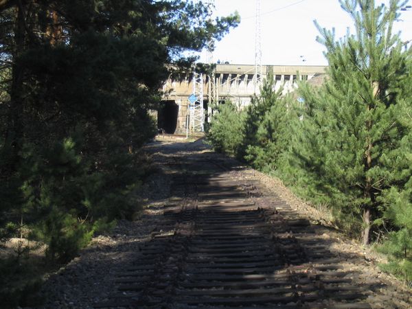 Die Schienen wurden gerade erst rückgebaut, im weiteren Verlauf der Strecke ist auch schon ein Teil der Schwellen zurück gebaut.