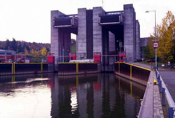 Das derzeit größte deutsche Schiffshebewerk befindet isch in Scharnebeck - Lübeck am Elbe-Seiten-Kanal. Mit einer Hubhöhe von 38 m befördert es die Schiffe zwei Meter höher als das in Niederfinow.
