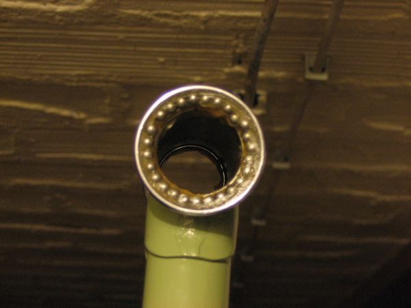 Die Kugeln werden dicht an dicht eingelegt und mit dem Fett sozusagenangeklebt. Nach dem Einbau der Gabel muß dann alles in Position gerückt werden und fertig.