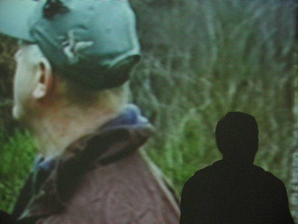 wartende Jäger werden per Videofilm auf 3 Leinwände geworfen, der Zuschauer kann frei zwischen diesen herumlaufen und wirft seinen eigenen Schatten aufs Bild, wird so zu einem Teil der Szene