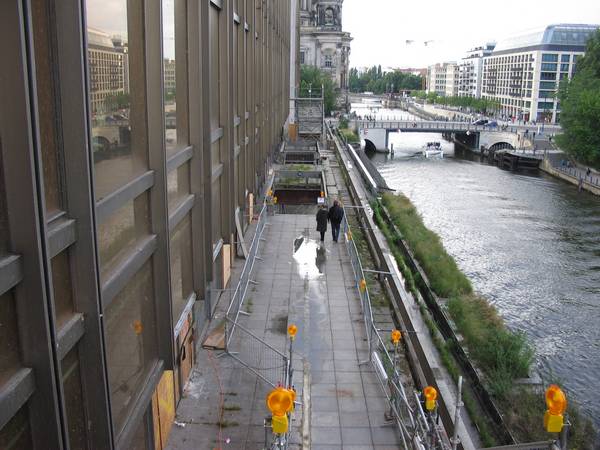 es geht an der Spree entlang weiter zum mittleren Teil des Palastes und der Ausstellung über Nutzungsmöglichkeiten für die Zukunft.