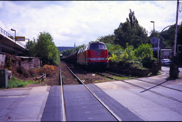 von Adam Transporte in Essen Kupferdreh beim Ausbau der Bahn von Essen nach Wuppertal zur S-Bahn 30.07.2001