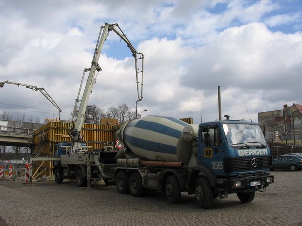 Betonieren am östlichen Widerlager der Bahnhofsbrücke