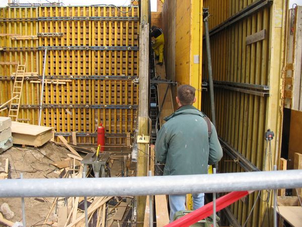 Betonieren am östlichen Widerlager der Bahnhofsbrücke