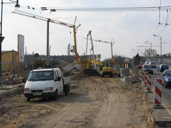 Blick von Osten von der Eisenbahnstraße auf die Baustelle der neuen Bahnhofsbrücke Eberswalde