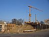 Betonierarbeiten am östlichen Widerlager der Bahnhofsbrücke in Eberswalde und Schalungsarbeiten am westlichen Widerlager