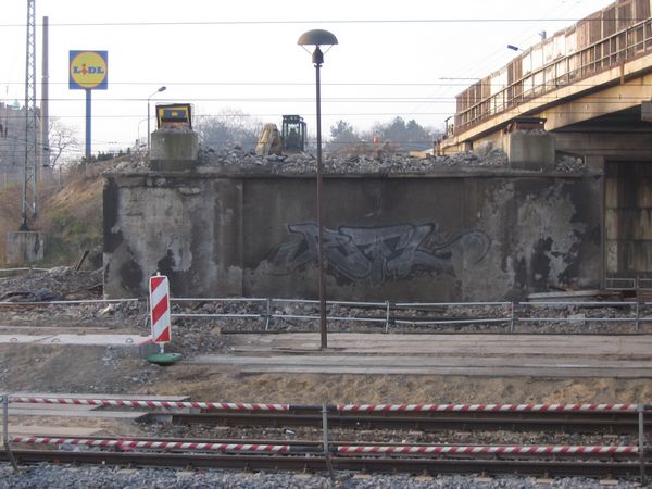 10.12.2004 Die Abrißarbeiten gehen am westlichen Wiederlager weiter.