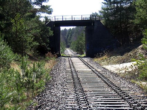 Im Bild zu erkennen ist die Brücke der Eberswalder Industriebahn, die Betriebe wie Walzwerk Finow bzw. Nachfolgegesellschaften und das Kraftfuttermischwerk, sowie den Binnenhafen Eberswalde mit dem Bahnhof Eberswalde verbindet.