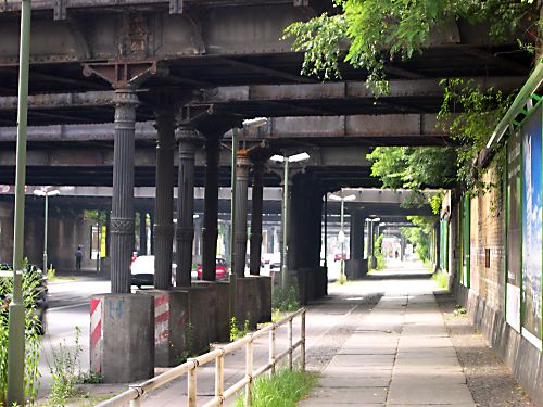 Eine der größten Brückenhäufungen in Berlin südlich des Gleisdreiecks. Ein großer Teil der Brücken ist derzeit jedoch ohne Funktion.