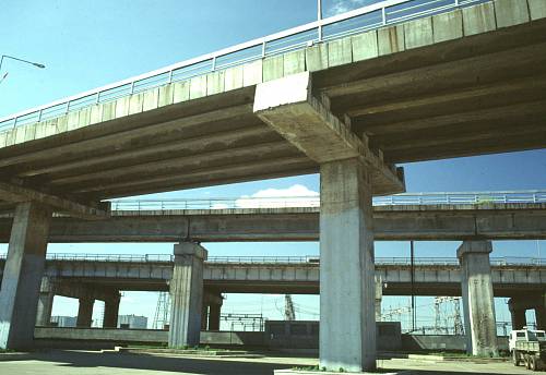 Bei Nischnikamsk wurde an der Kama ein Wasserkraftwerk errichtet. Gleichzeitig quert hier eine Straße den Fluß, die anderen Brücken dienen der Zufahrt zu verschiedenen Bereichen des Kraftwerks. 13.05.1995