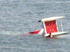 Am Wochenende war einmal wieder etwas mehr Wind - gekenterter Katamaran auf dem Werbellinsee