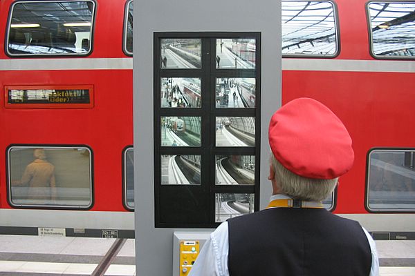 Technik, die begeistert. Monitore zur Überwachung der Zugabfertigung mit Schaffner.