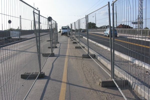 Bauzaun auf der Südseite - der Fußgänger und Radverkehr ist jeden Tag neu organisiert.