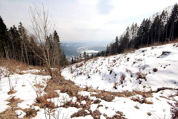 Der schönste moment der gesamten wanderung - wir kommen aus dem wald und sehen graz sowie teile der pannonischen tiefebene vor uns ausgebreitet. dazu scheint die sonne (zum letzten mal für die nächste woche) so richtig kräftig und es ist windgeschützt.