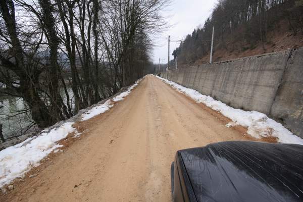 Der Asphalt hört auf und für einen guten Kilometer geht es auf dieser Schlammpiste weiter. Aber mein Auto kennt sowas ja auch von zu Hause, nur hat der Schlamm dort eine andere Farbe.