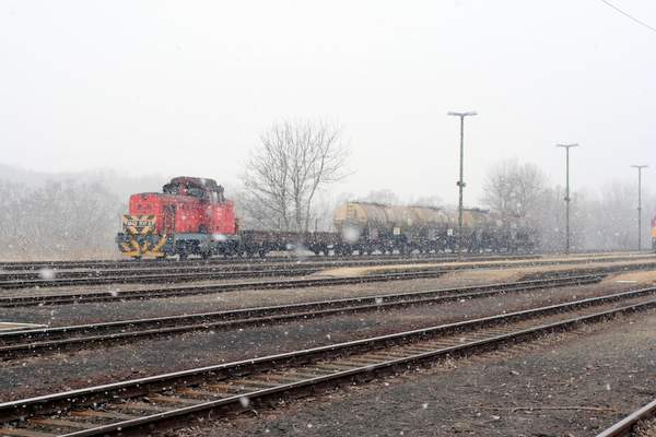 Die M43 setzt die Güterwagen des gerade mit der m62 eingetroffenen Güterzuges auf ein anderes Gleis um.