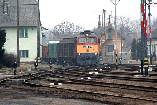 M62 311 bei der Einfahrt in den Bahnhof von Papa