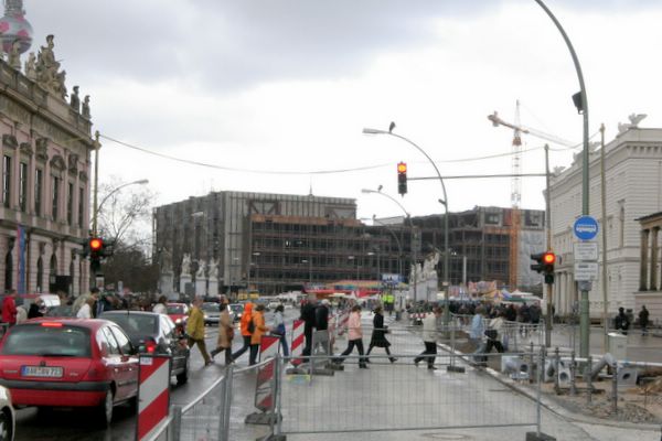 Blick auf den Palast aus Richtung Westen von der Straße Unter den Linden.