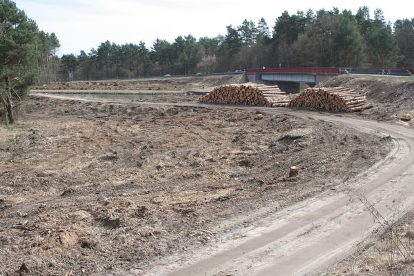 Im Vorfeld des Neubaus der Kaiserwegbrücke wurde ein Stück Wald gerodet. Blick vom Nordufer