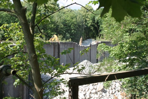 Abbrucharbeiten an der 1. Schleuse der Schleusentreppe Niederfinow