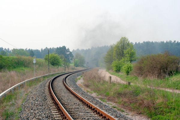 Die Dampflok ist schon eine Weile durch, aber der Qualm steht noch immer zwischen den Bäumen.