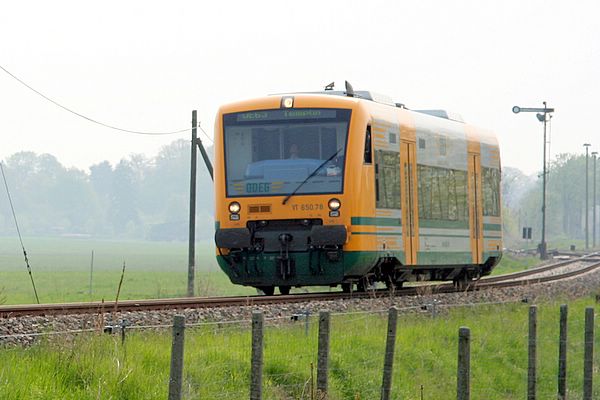 RS1 der ODEG bei der Ausfahrt aus Joachimsthal in Richtung Templin