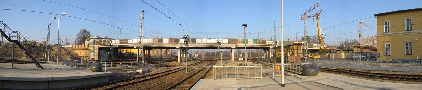 06.02.2005 - Brückenbaustelle am Bahnhof Eberswalde. Hier wird die alte Eisenbahnbrücke durch einen Neubau ersetzt. Dank eines intelligenten Verkehrskonzeptes blieben die ganz großen Verkehrsbehinderungen aus. weiter