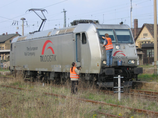Die Lok 185 wartet im Bahnhof Gaschwitz im Süden Leipzigs auf den nächsten Einsatz und der Fotograf auf die Abfahrt?.