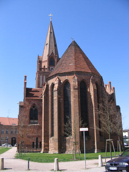 Die Maria Magdalenen Kirche ist die größte Kirche in Eberswalde. Sie erhebt sich auf dem Hang über dem alten Marktplatz und der Baustelle zum neuen Kreishaus.