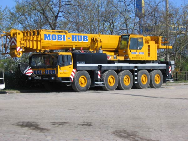 Auf dem Bild ist einer der beiden großen Mobilkrane zu erkennen.