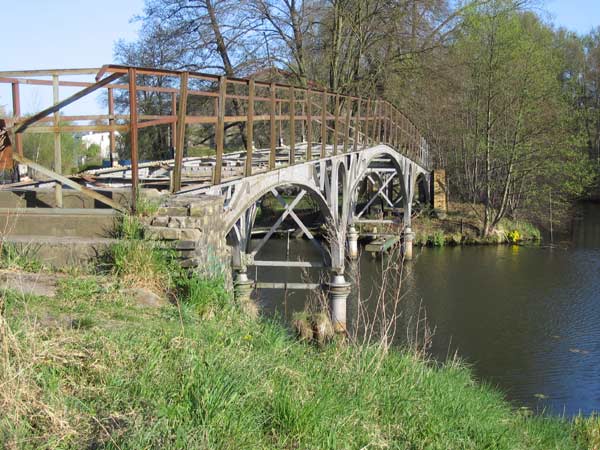 Die Brücke stand ursprünglich als fünffeldrige Brücke in Berlin, wurde Ende des 19. Jahrhunderts aber als Übergang für die Treidler hierher versetzt.