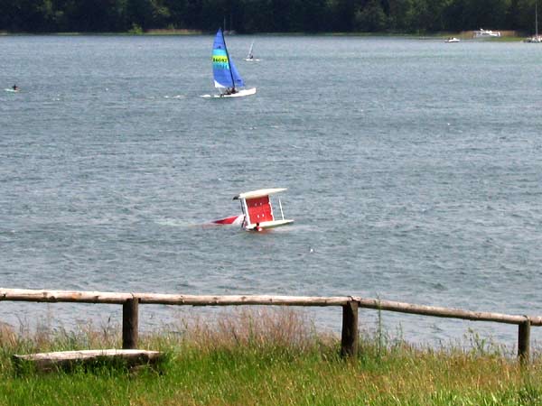 gekenterter Katamaran auf dem Werbellinsee