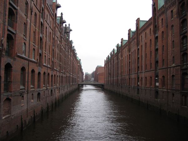 unterwegs in der Speicherstadt - der graue Himmel läßt alles düster erscheinen