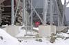 25.01.2005 - Verbindungskurve zwischen der Frankfurter Bahn und der Bahnlinie Berlin Stettin im Bereich Eberswalde - auf dem gesamten Bahndahm am dem Abzweig in der Nähe des Kraftwerkes Nordend wurde der Schotter rückgebaut.