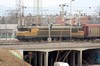 Gleisverlegemaschine für den Gleisbau im Bereich des Kreuzungsbauwerkes von Kanal und Bahnlinie