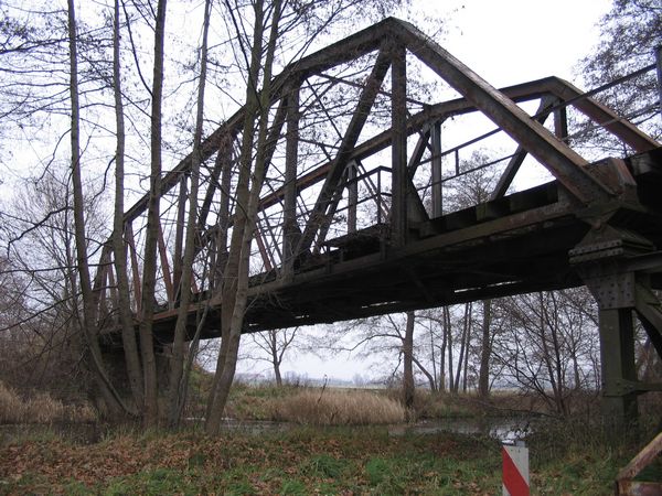 Östlich von Liebenwalde quert die alte Eisenbahnbrücke der Heidekrautbahn den Langen Trödel.