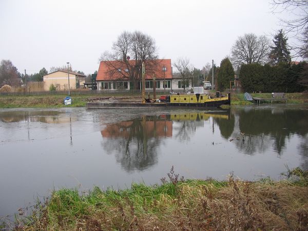 Baggerprahm unterhalb der Schleuse Leesenbrück am Finowkanal