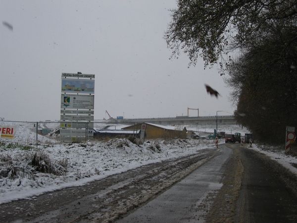 Blick auf die Baustelle zur Schleuse Uelzen 2. Allerdings ist von hier nichts zu sehen, außer ein Paar Containern und Baumaterial.