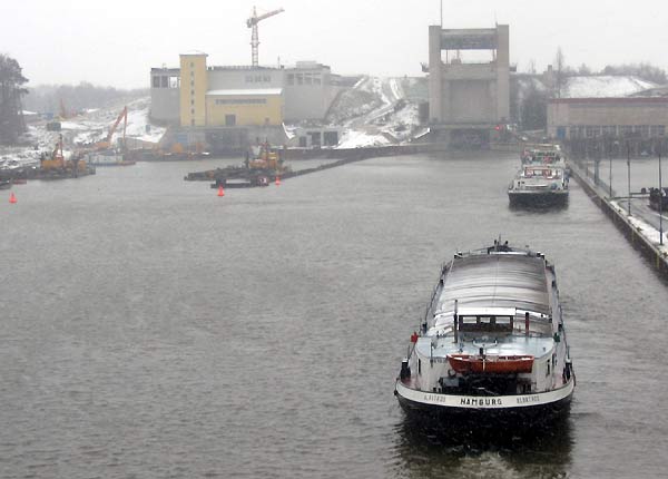 Blick von der Straßenbrücke auf die Schleusenunterhäupter.