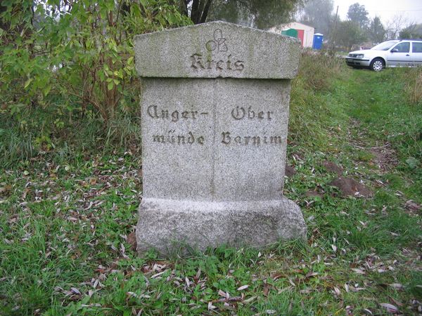 Die alte Kreisgrenze zwischen den Kreisen Angermünde und Oberbarnim wurde durch derartige Steine markiert.