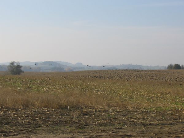 Tausende von Wildgänsen rasten südöstlich von Herzsprung auf einem abgeernteten Acker.