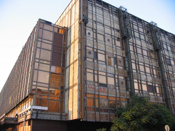 Ansicht des Gebädes aus Richtung Südost. Obwohl die Fassade schon mächtig gelitten hat, kann man den eigentlichen Glanz vergangener Tage noch erahnen.