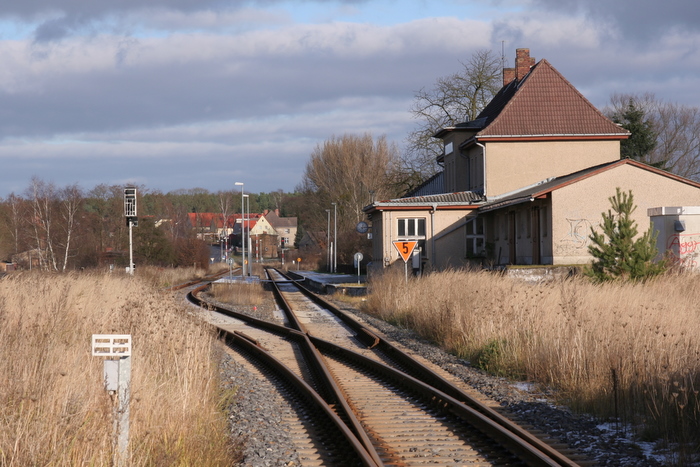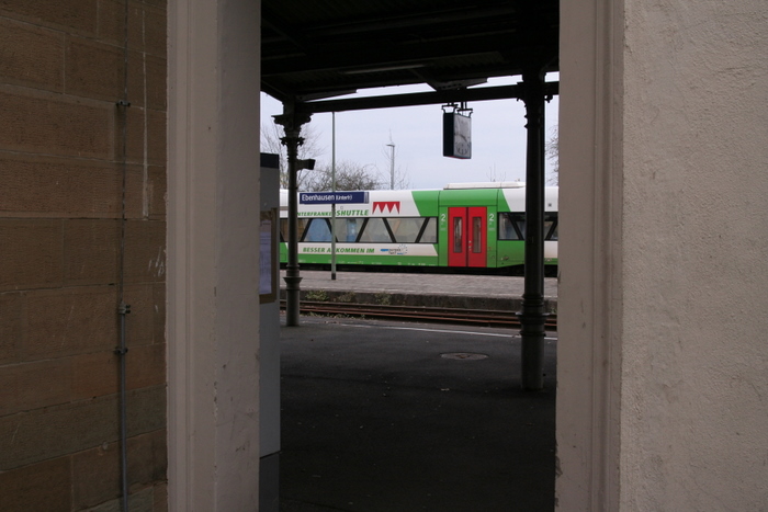 obwohl die GDL heute mal wieder streikt, rollen hie rdie Züge, das Bahnhofsgebäude steht wie so oft in kleineren Orten leer