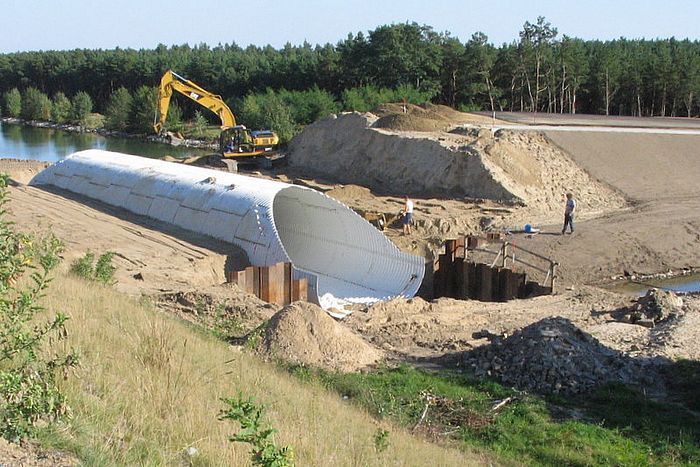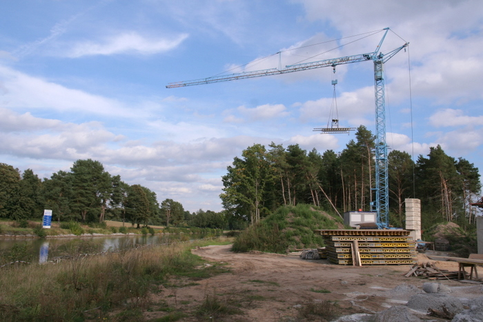 Die alte Kaiserwegbrücke über den Oder-Havel-Kanal westlich von Finowfurt wird ersetzt. Das südliche Widerlager ist bereits fertig gestellt.
