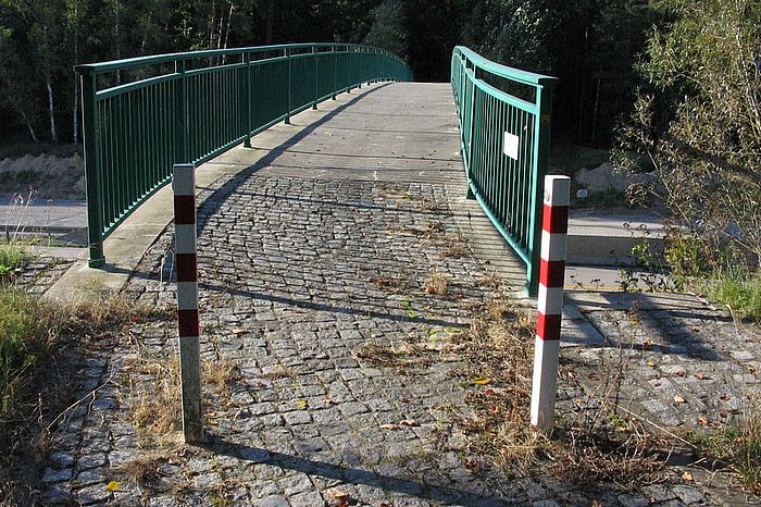 Im Bereich des alten Finowfurter Bahnhofs wurde vor kurzem dieses Tor neu errichtet und verhindert flüssiges fahren abseits der Straße.