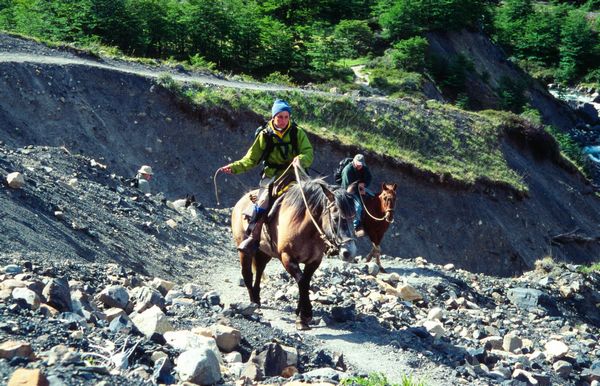 Auf dem Weg zur Hütte "Refugio Chileno" kam uns eine Gruppe von drei Reitern entgegen