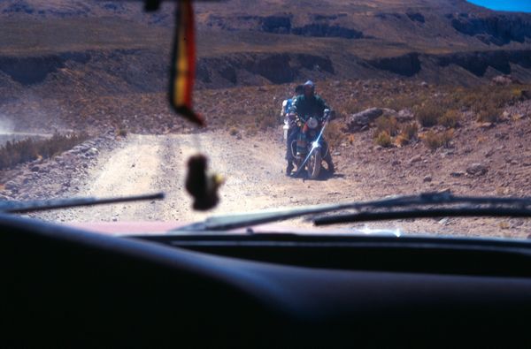 Immer wieder einmal begegnen wir auch an den entlegensten Orten jemandem. Meist auf zwei Rädern.